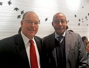 Dr. Ibrahim Assane Mayaki, Secretary-General of the African Union's N.E.P.A.D. Agency, receiving the 2017 Water Award from Prince Albert II, Chairman of the Foundation, named in his honor. This distinction adds to the ongoing recognition being extended to Dr. Mayaki for his leadership of both the Veolia Foundation and its affiliated Global Alliance Against Cholera.