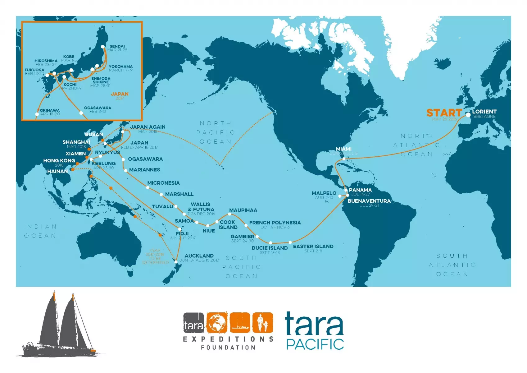 Tara Expéditions will inform the public about the progress of the expedition through the press, its own website and those of its partners – including the Veolia Foundation – and international TV documentaries. The schooner will carry out two awareness-raising campaigns in Asia, in 2017 and 2013, with several stopovers currently being planned in Japan, South Korea and China. Before its return to Europe, Tara Expéditions plans stopovers in Singapore, the Middle East and the Mediterranean to publicize its work.