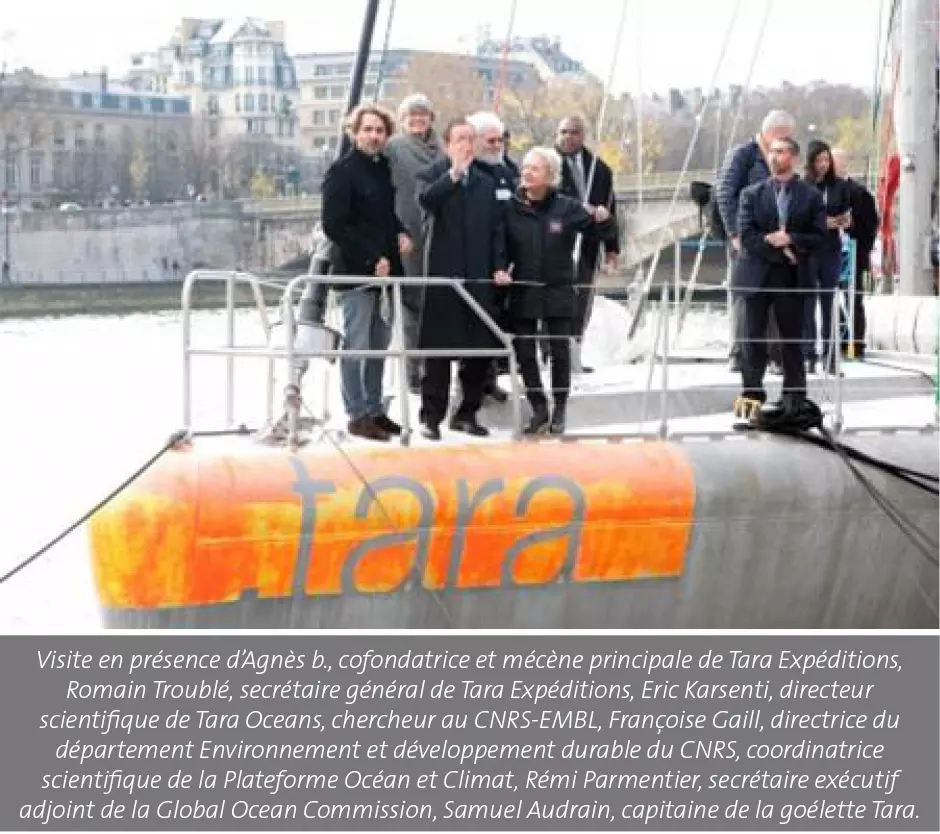 La goélette, amarrée au cœur de Paris au pied du Grand-Palais, a permis de soutenir l’ambition d’un accord dans la lutte contre le réchauffement climatique. Le Pavillon Tara Océan & Climat, prolongement installé sur les quais de Seine, a accueilli une série d’événements dédiés à l’océan et permis que ces enjeux soient introduits dans l’accord universel signé au terme de la COP 21.