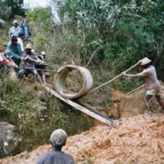En 2003, un groupe d'élèves ingénieurs de l'association Idées rencontre les villageois de la commune rurale d'Alakamisy-Ambohimaha, à Madagascar. L'objectif de cette enquête : évaluer leurs besoins en adduction d'eau, écouter les propositions de la population et étudier la faisabilité des projets. De retour en France, ils ont acquis une conviction : pour être « durables », les réseaux doivent être réalisés avec les villageois et entretenus par eux. Grâce aux conseils de Jean-Claude Rimlinger, volontaire de Veoliaforce et parrain du projet, ils optent pour trois systèmes d'adduction de type gravitaire*. Sur place, ils aident à la création d'un comité d'eau, structure décisionnelle locale, dans chacun des trois villages concernés. Celui-ci se charge de faire creuser les tranchées nécessaires aux réseaux. Fin 2004, les élèves ingénieurs d'Idées posent buses, citernes et tuyaux, qui seront complétés par des bornes fontaines pour la distribution de l'eau. Enfin, ils proposent et mettent en place une redevance annuelle prélevée par le comité d'eau pour permettre l'entretien du réseau.