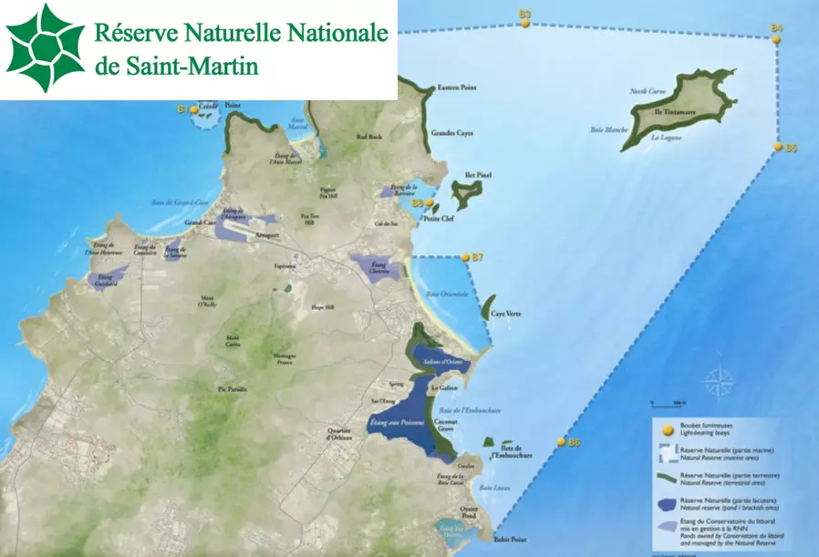 Située au Nord-est des Antilles, l’île de Saint-Martin dispose d’une aire marine protégée de 30 km². Créé en 1998, cet espace préserve les cinq principaux écosystèmes de l’île : récifs coralliens, mangroves, herbiers de phanérogames, étangs et forêt sèche littorale.